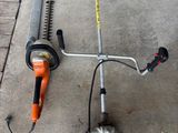 Ensemble taille haie électrique et débroussailleuse
