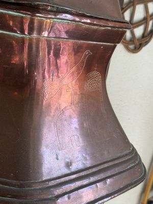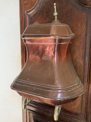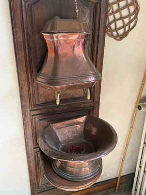 Fontaine en cuivre sur dosseret bois , ancienne porte en chê…