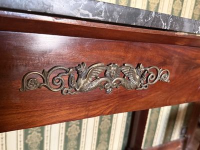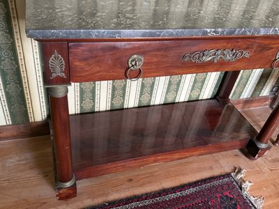 Console Empire à dessus de marbre noir.
