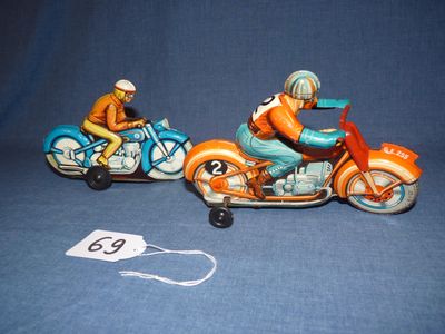 Deux motos en tôle en bon état : une Technofix No2, mécanism…