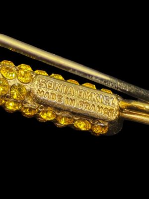 SONIA RYKIEL. Broche-barrette en métal doré.