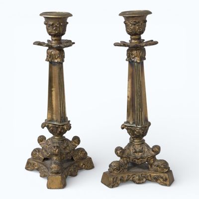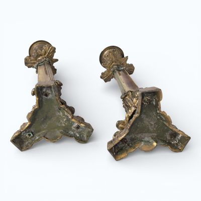 Paire de FLAMBEAUX en bronze, le fût reposant sur un pièteme…