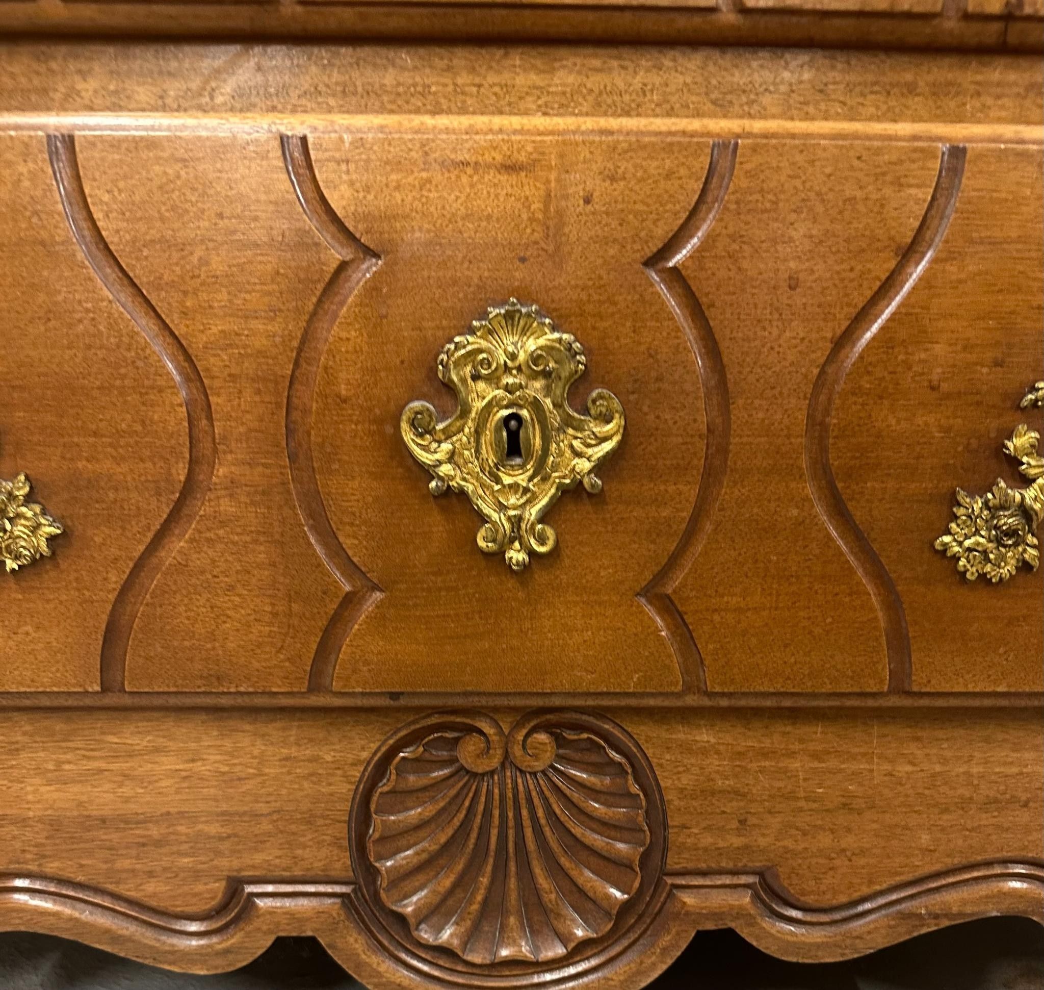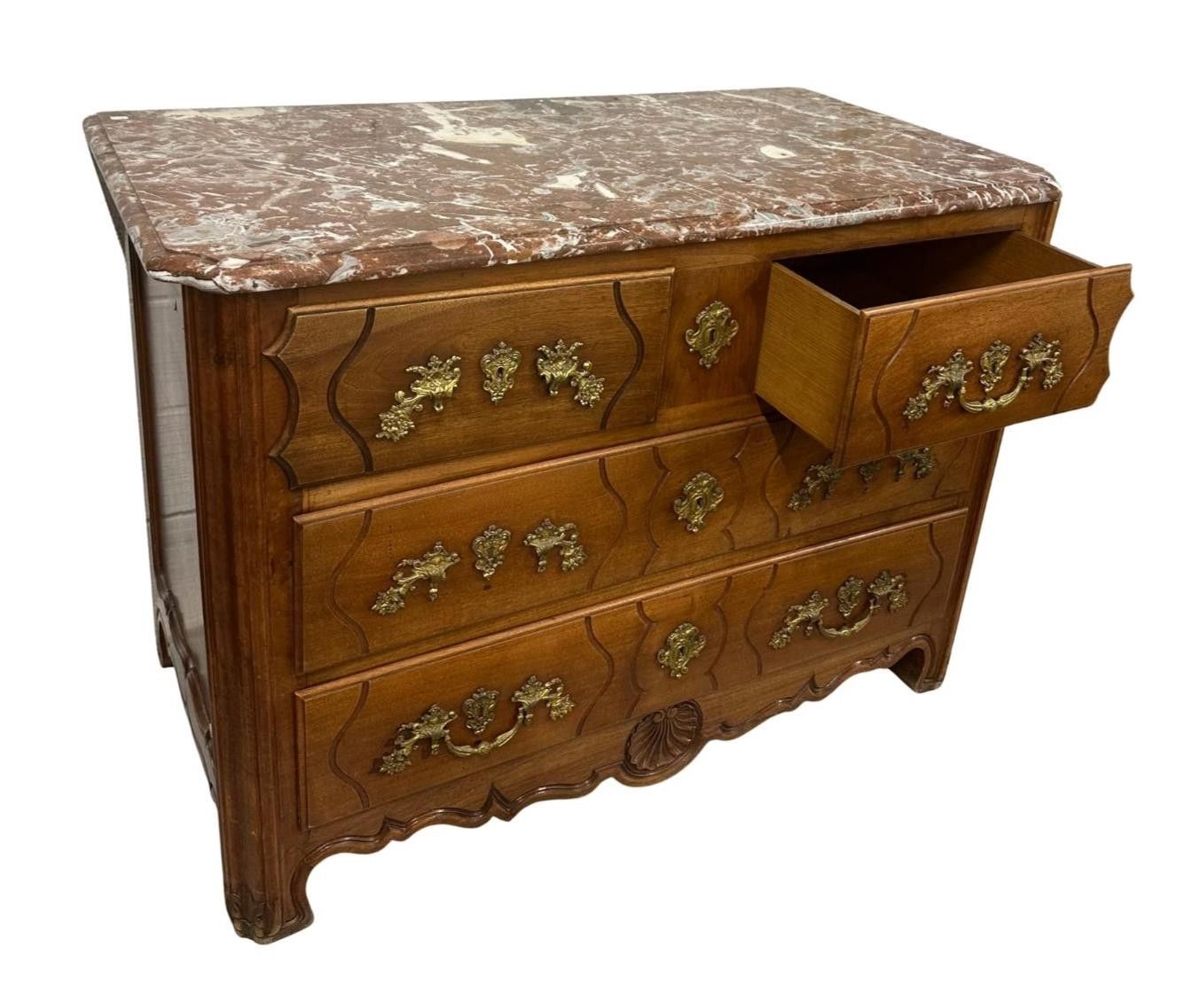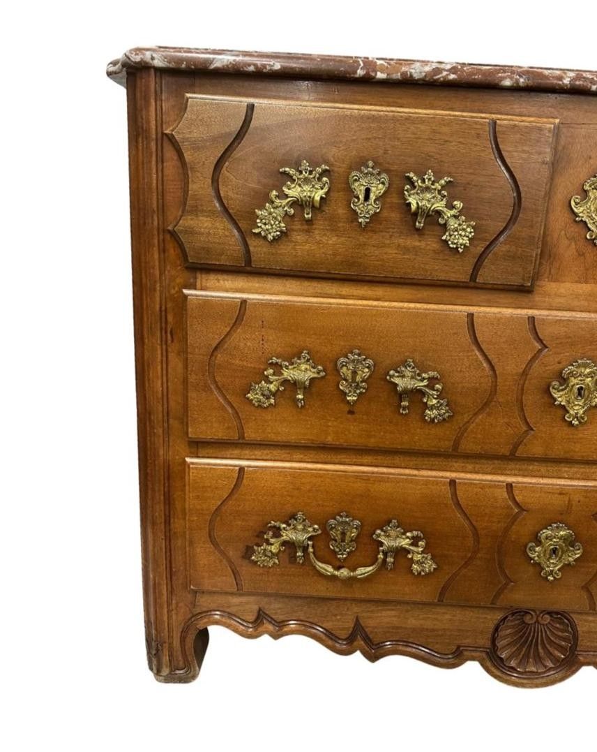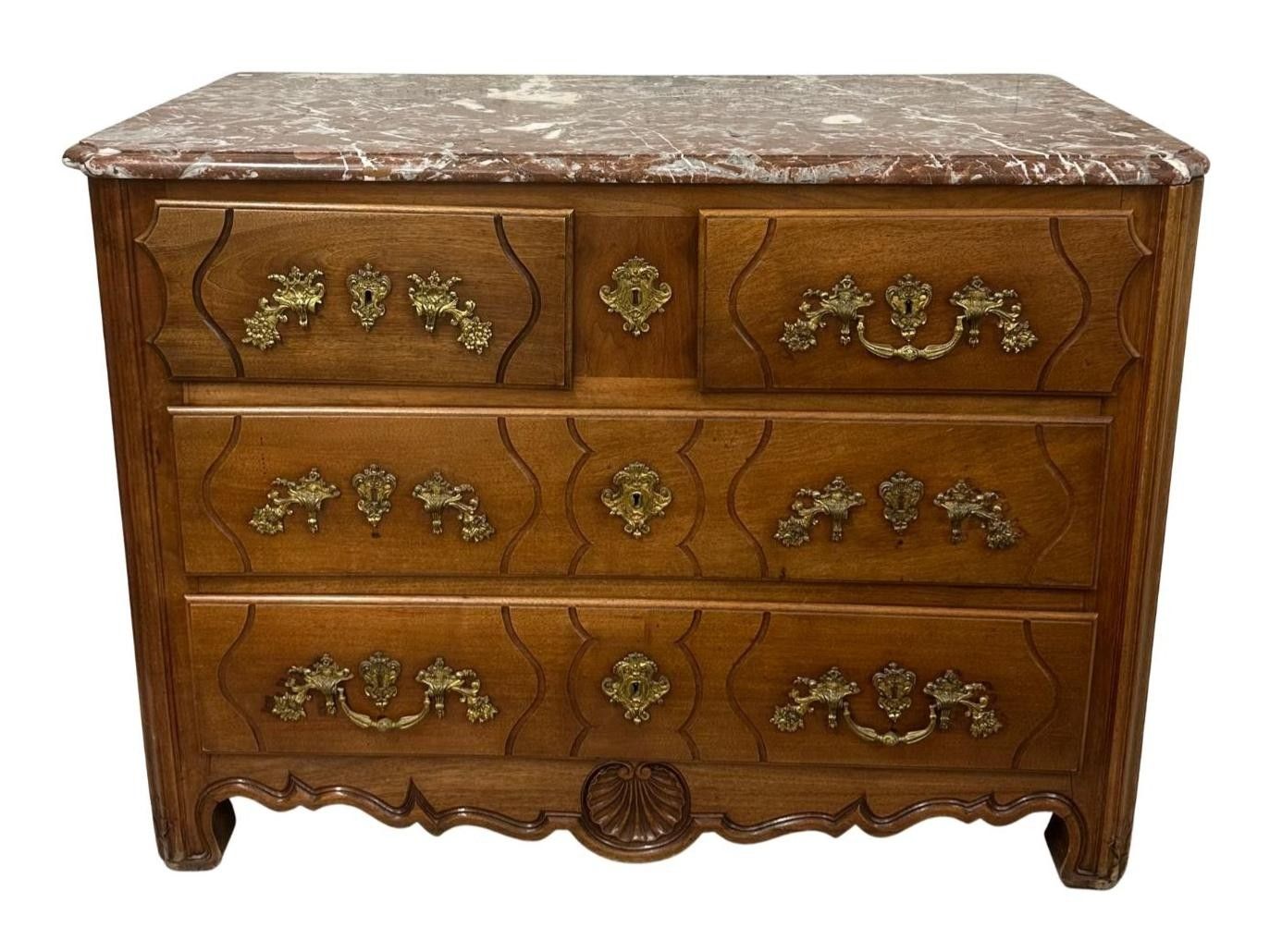 Commode Louis XV en bois de placage galbée - Mobilier Ancien