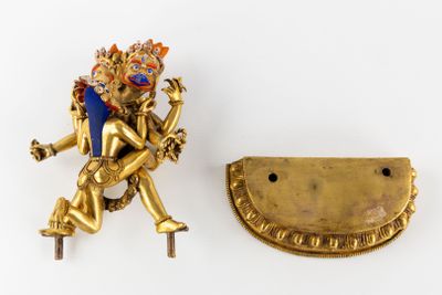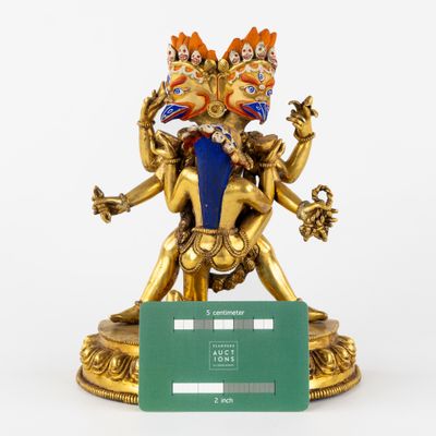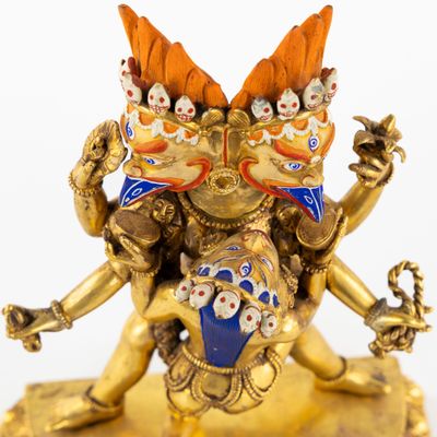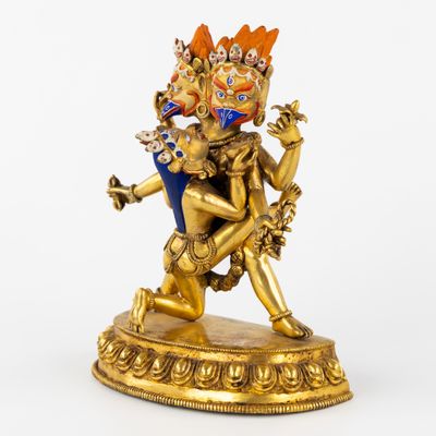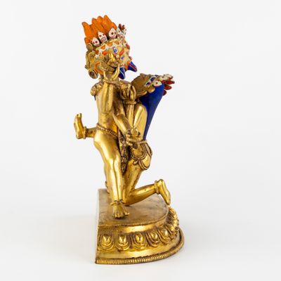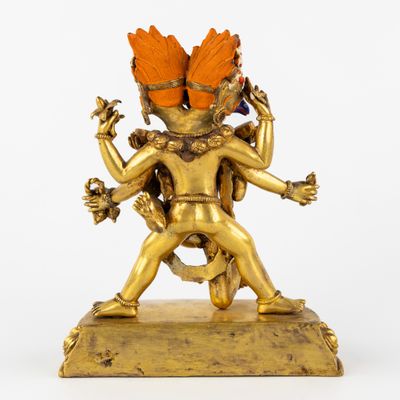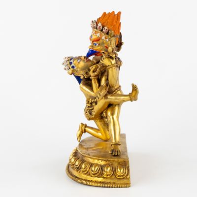 Statue de Garuda à deux têtes et de son épouse en yab-yum, b…