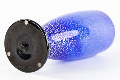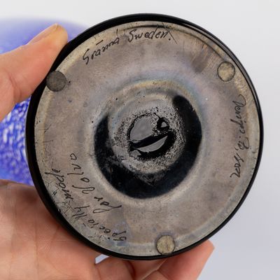 Gränna Glasbruck, un vase bleu cobalt avec des inclusions d'…