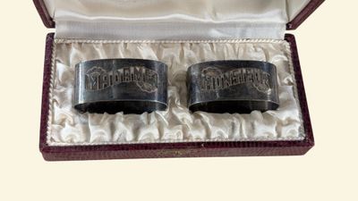Paire de ronds de serviette en métal argenté ajouré marqués …
