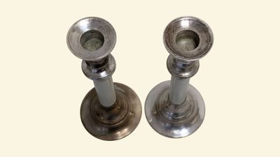 Paire de bougeoirs en méta… Ce lot appartient à la catégorie Objets d'art & Curiosités. Son estimation se situe entre 30 et 50 €. Présenté par ACCORD ENCHERES COMPIEGNE VENETTE | Maître Philomène WOLF à Venette. 3 photos disponibles.