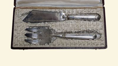 E. JOVET à CHAUNY Couvert de service à poisson en métal arge…
