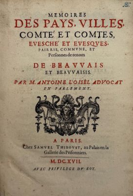 LOISEL (Antoine). Mémoires des pays, villes, comté et comtes…