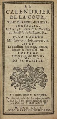[ALMANACH]. Le Calendrier de la Cour, tiré des Éphémérides, …