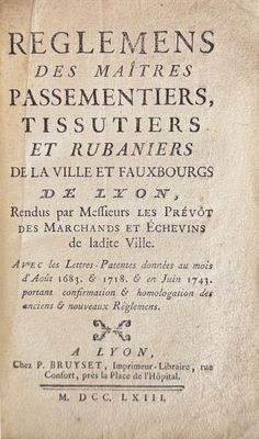 TISSUTIERS. Ensemble trois volumes. Reglemens et statuts, pr…