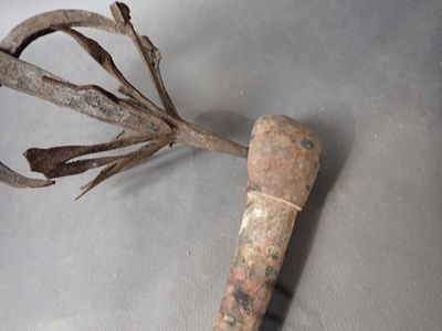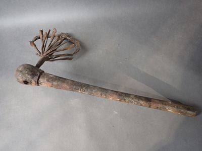 Afrique de l'Ouest, hache en bois H 46 cm et fer forgé