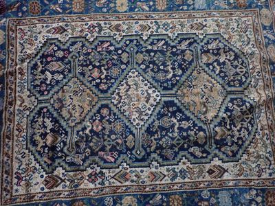 Tapis noué main, à décor d'oiseaux, fond bleu, 154x117 cm (u…