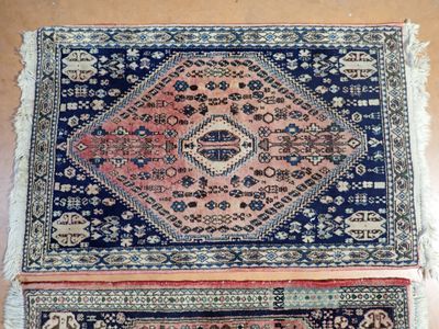 Lot de 2 tapis noué main, dim 101x65 cm et 105x68 cm (usures…