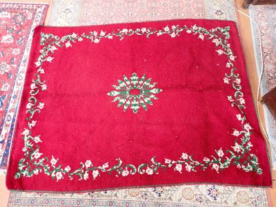 Important tapis en laine, motif floral, 254 x 192cm