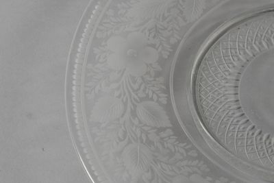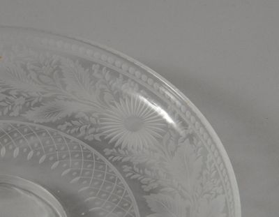 Assiette et coupe en verre incolore, les lèvres gravées de f…