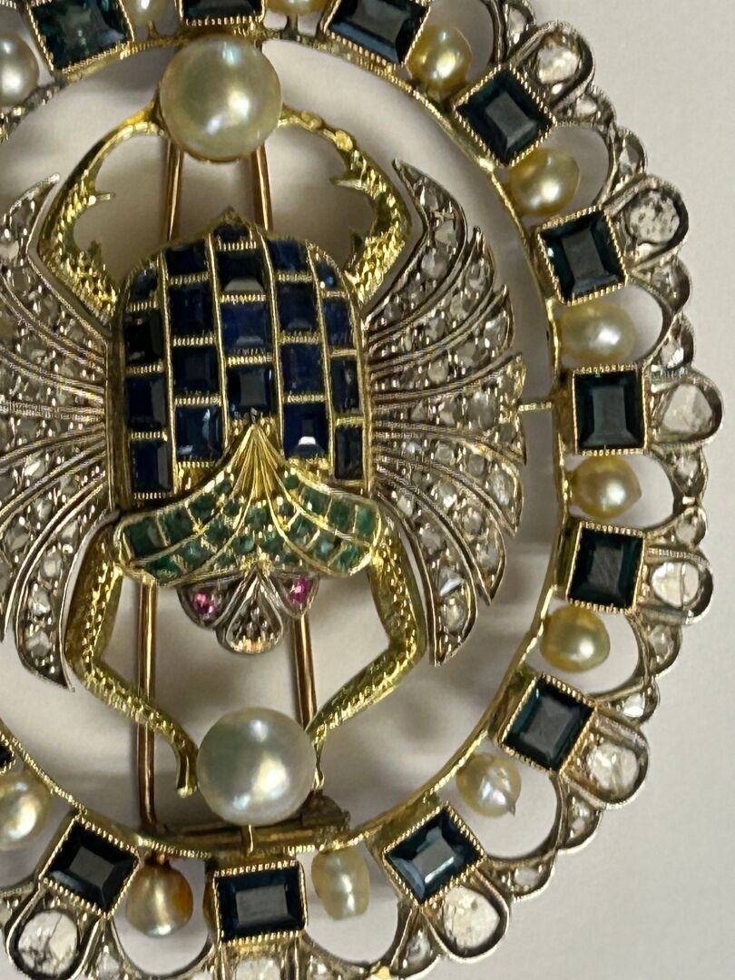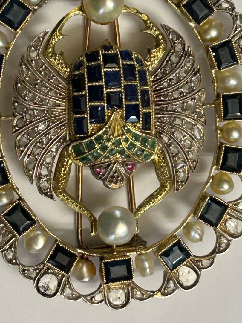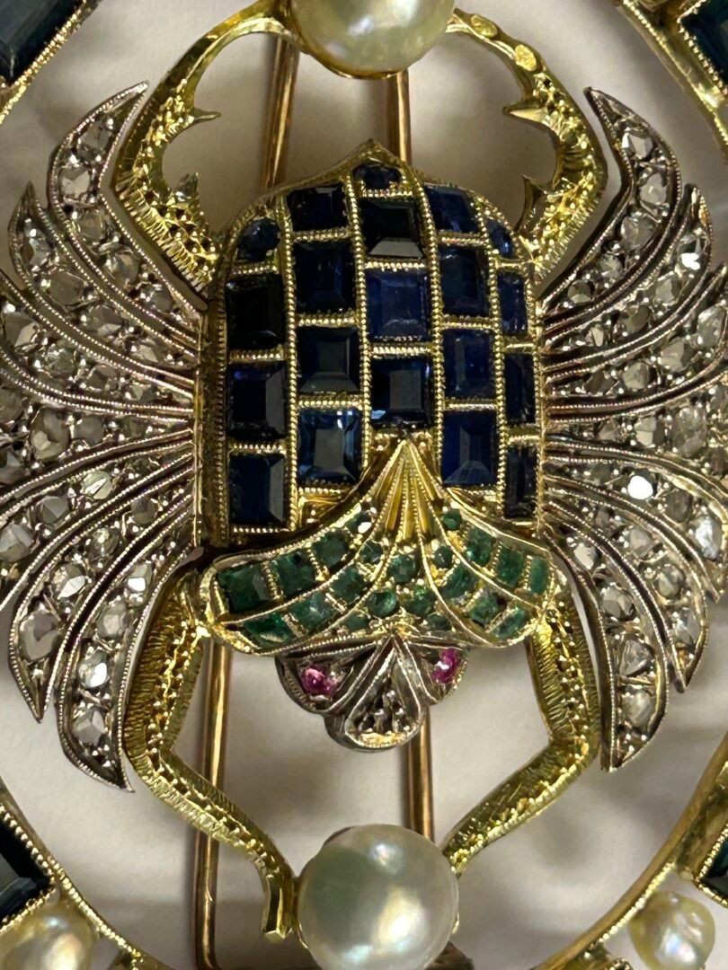 Broche en or et argent ornée de cabochons d'émeraudes - Bijoux d'exception