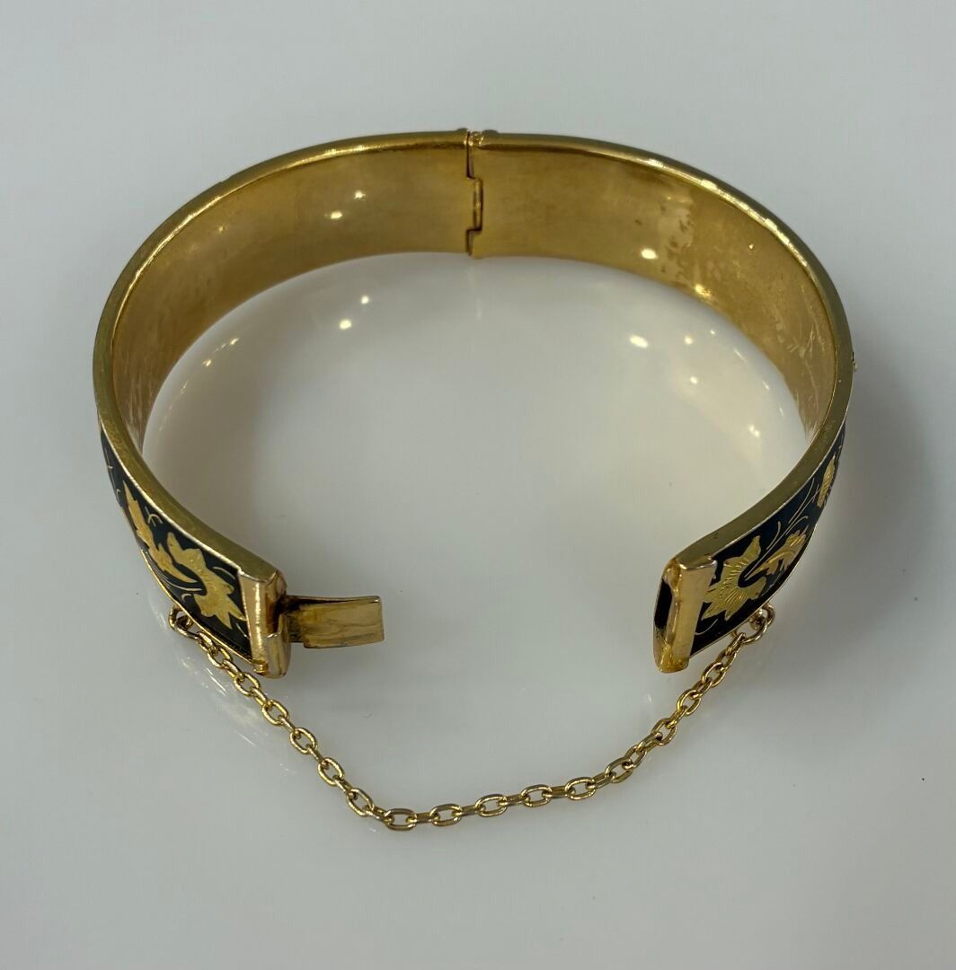 HERMES Paris Bracelet manchette en cuir et métal doré modèle…