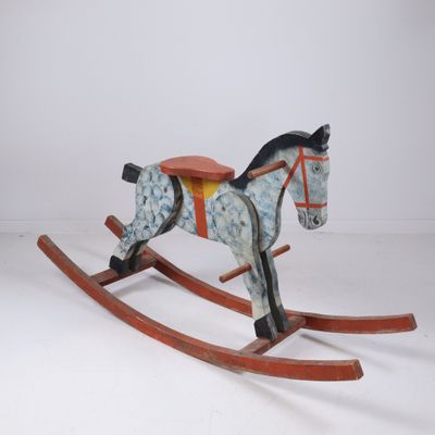 Cheval à bascule en bois peint.