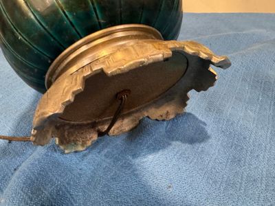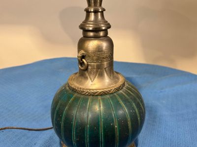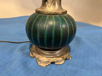 Lampe en céramique verte, la monture en métal et l'abat jour…