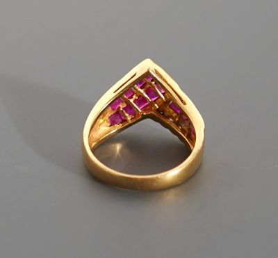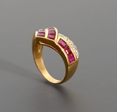 Bague moderniste en or jaune 18K 750 millièmes présentant tr…