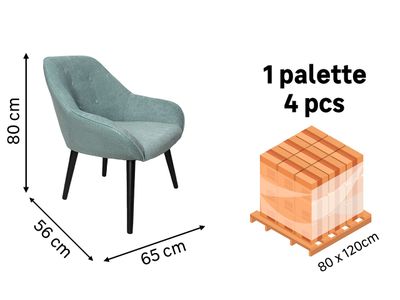 Lot DE 4 Fauteuils 65x56x80cm Vert_gold Velours