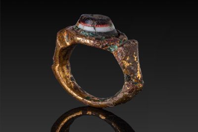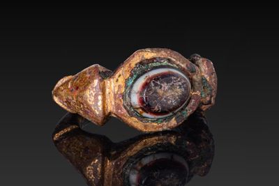 Anneau Romain Tardif EN Bronze DorÉ Avec Intaille EN Agate R…
