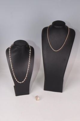 1 lot de 2 chaînes en métal argenté et une bague en métal ar…