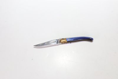 Petit Couteau LAGUIOLE pliant le manche façon nacre bleue, l…