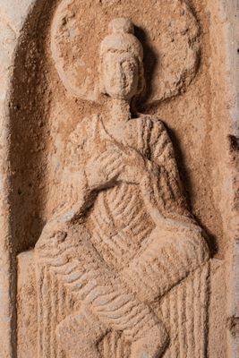 Brique Chinoise EN Terre Cuite Avec Bodhisattva Assis