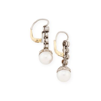 Paire de pendants d'oreilles en platine 850‰ et or gris 750‰…