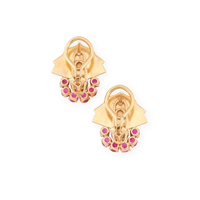 Paire de boucles d'oreilles dans l'esthétique Rétro en or ja…