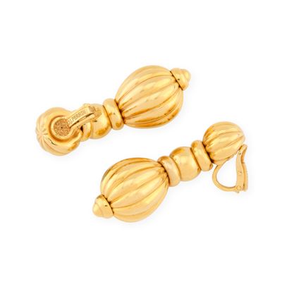 O.J. PERRIN Paire de pendants d'oreilles en or jaune 750‰ co…