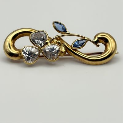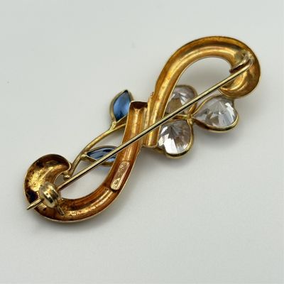 Broche en or 18K sertie de pierres synthétiques.