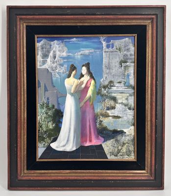 Marcel DELMOTTE (1901-1984). Duo de femmes sur fond de paysa…
