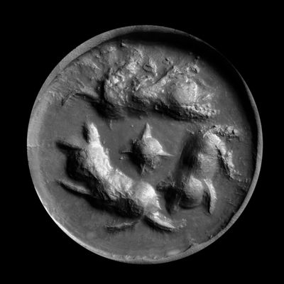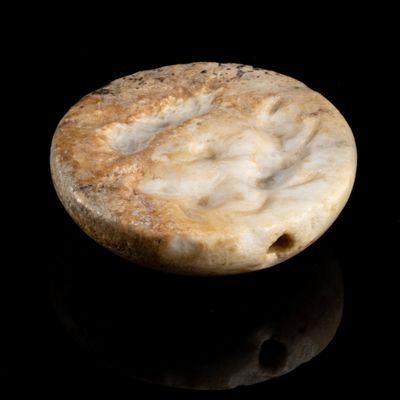 *SCEAU SIGILLÉ En marbre blanc, de forme circulaire, le plat…