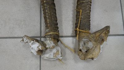 Paire de cornes de gazelle. Long 79 cm