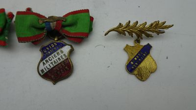 2 Broches boutonnières en métal doré et émaillé.