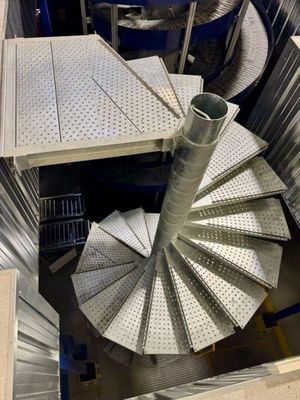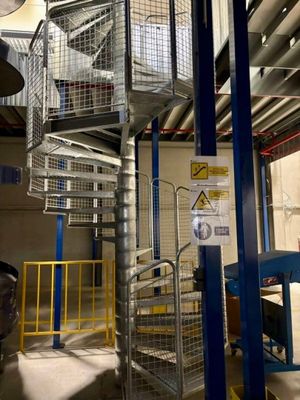 Un escalier extérieur en colimaçon métallique de mezzanine e…