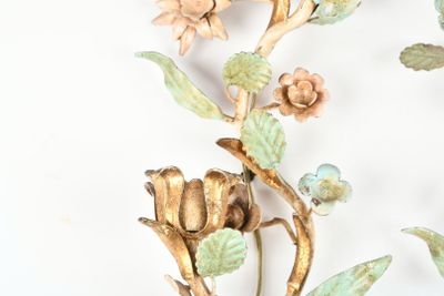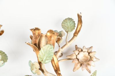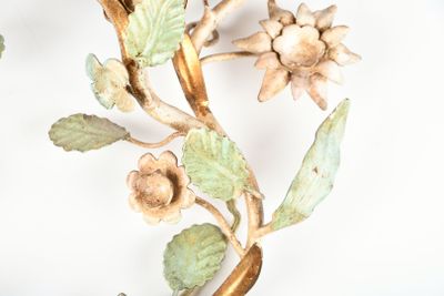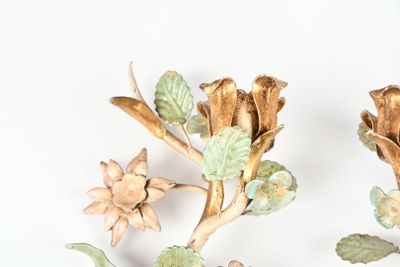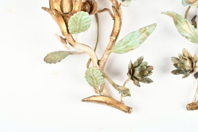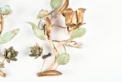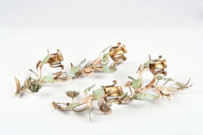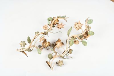 APPLIQUES (paire de) en fer forgé et tôle laquée à décor de …