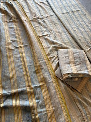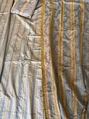 Quatre rideaux dépareillées de style Louis XVI à rayures ble…