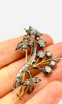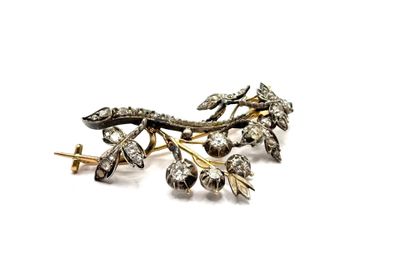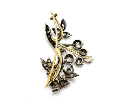 Broche en or 18K et argent (750) en forme de gerbe fleurie o…