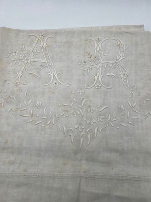 Réunion de quatre drap en lin blanc.