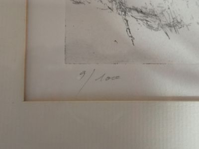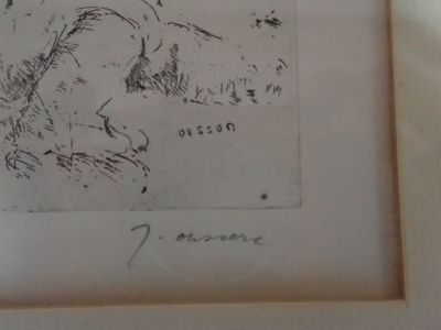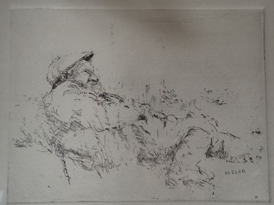 Jacques OUSSON (1937). Homme barbu à la sieste, eau-forte si…