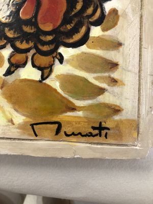 MURATI "Le coq" pigments sur plaque de plâtre SBD (60x43cm)