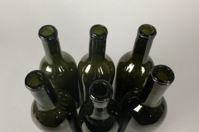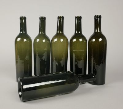 Six bouteilles de forme Bordeaux en verre de différentes nua…