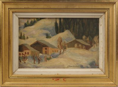 Pierre CHARBONNIER (1897-1978). Chalets sous la neige, 1925