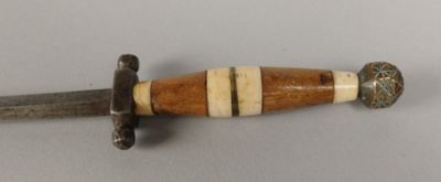 Petite dague de fabrication récente à lame losangique. Fusée…