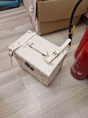 Mallette de coiffeur en simili cuir blanc et clous dorés