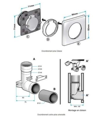 Lot de 11 Prises murales avec ou sans raccordement électriqu…